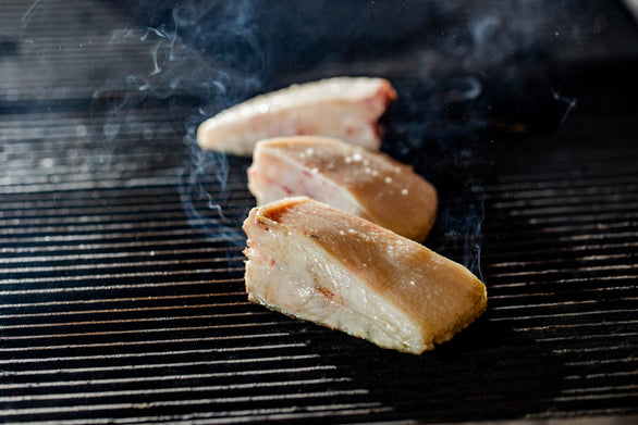 When grilling and roasting a piece of fillet, cook it mostly skin side down in a pan, on the grill or in the oven. The skin insulates the fish from direct heat and you will end up with a more tender texture.