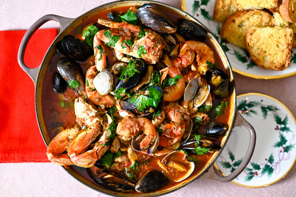 This indulgent, tasty seafood stew originated here in San Francisco where fisherman would combine their respective seafood catches of the day into a nourishing communal seafood meal.
