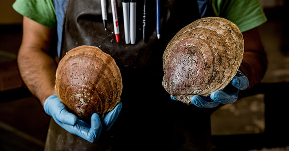 Live sea scallops will have a beautiful tasting-brine to them reminiscent of the flavor of the ocean and a sweet, nutlike adductor muscle. The muscle inside will vary in hue from a glowing pearl color to rusted orange. The color of "Blushing Scallops," those with the orange meat, are due to the pigments produced in the female gonads.