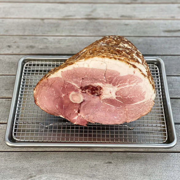 At Four Star, we are not only fishmongers but also professional chefs ourselves. Meat is our specialty and we have an eye for the top hams on the market. This commitment to only sourcing the best of the best product is why we are so passionate about only offering top quality hams from small-scale producers. Our Berkwood Farms ham in particular is noteworthy for its exceptional flavor, texture, and aroma. These hams are made using traditional techniques and cured with a blend of spices to create a rich, savory taste that pairs perfectly with cheese, crackers, and other charcuterie board staples.