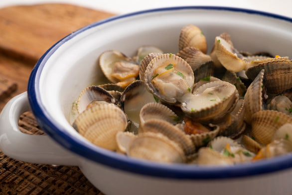 Introducing our delicious and flavorful Steamed NZ Cockle Clams in Traditional Basque Green Sauce, a dish that is sure to impress seafood lovers!