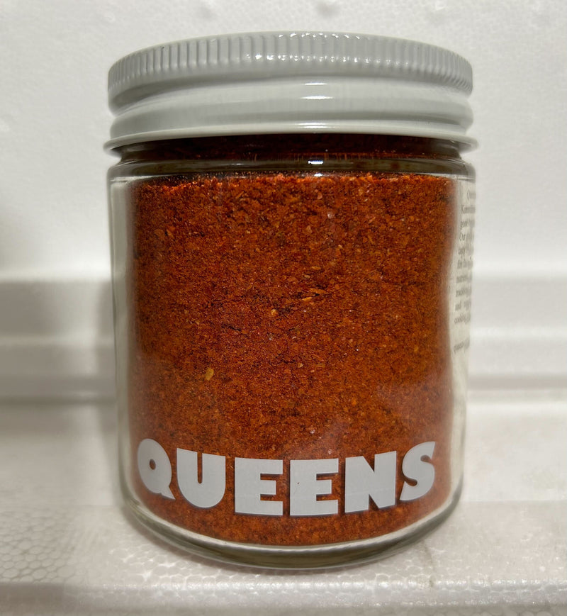 Queens Gochugaru is a staple Korean chili flake made from heirloom hot peppers. Sun-dried and coarsely ground, it delivers bright color, moderate heat, and a clean, fruity flavor. Perfect for kimchi, soups, and seasoning grilled dishes.